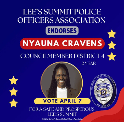 I have been proud to call Lee’s Summit home for more than 20 years, where my husband and I are raising our two daughters. Our family is deeply rooted in this community, and I am committed to helping ensure that Lee’s Summit remains a safe, welcoming, and thriving place for all residents.